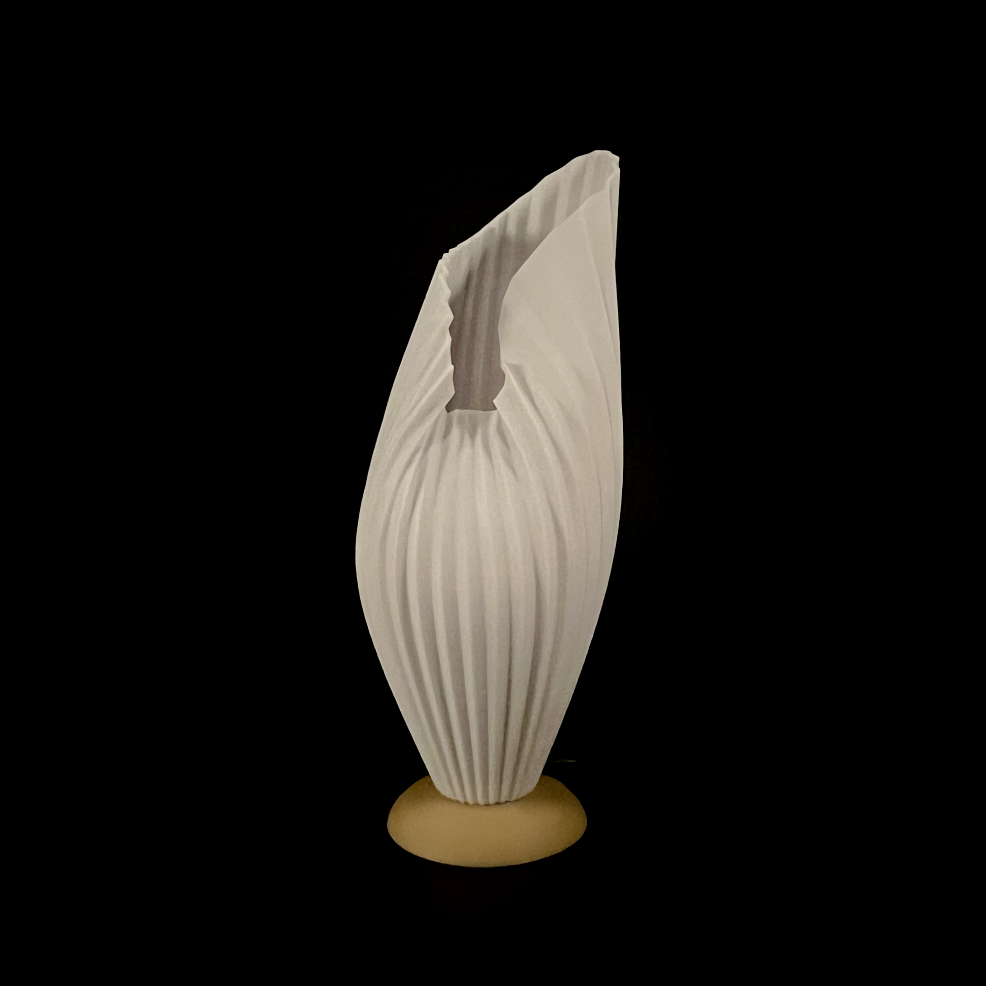 Inspired by folded paper fans, the Folded Inside table lamp is the perfect accent piece and provides a soft ambient lighting to any room. The LED version (USB Powered) is a perfect for soft ambient lighting, such as a night lamp, while the Tea Light version (CR3032 battery powered, 40 hours) is perfect as a center piece